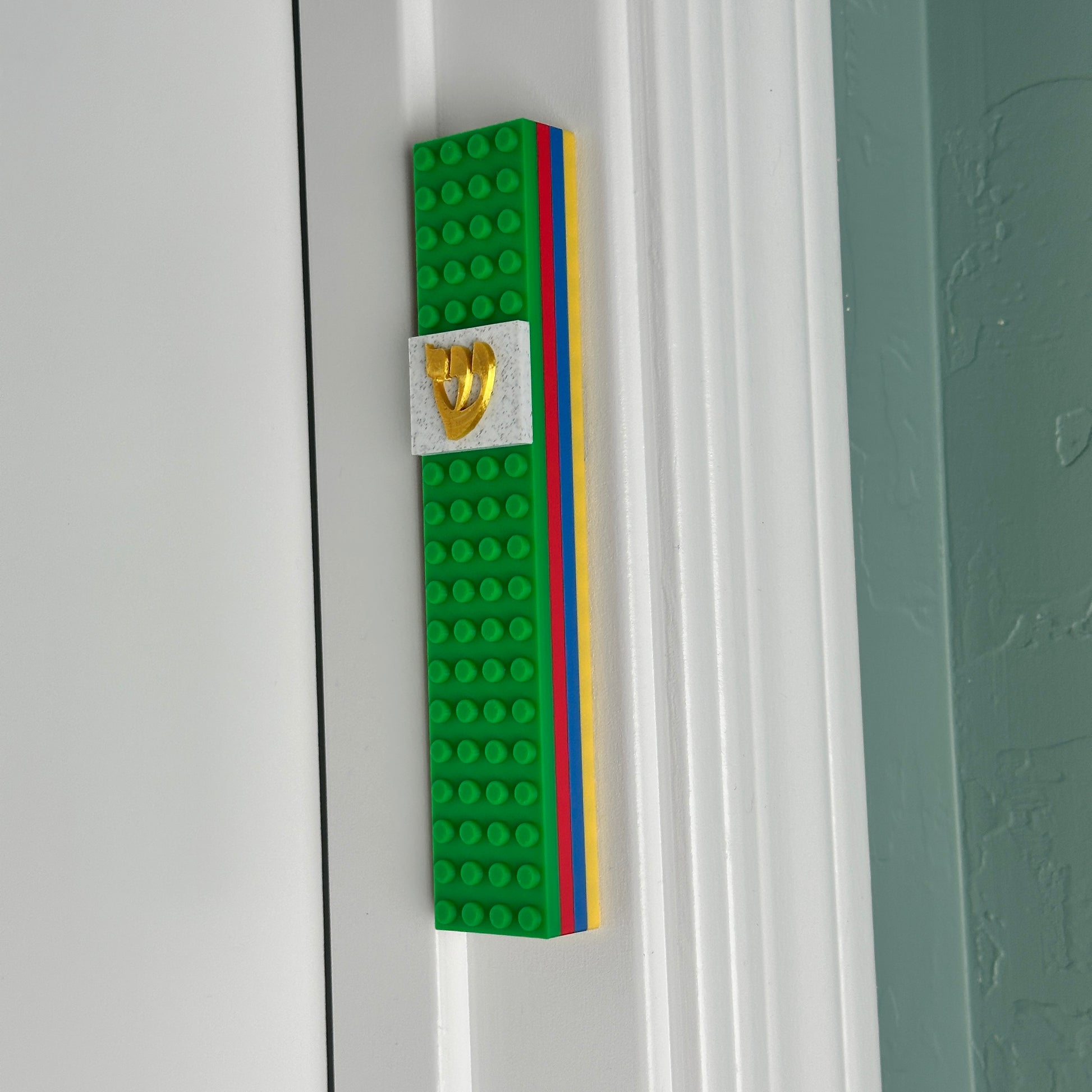 Adorn your home with our exquisite 3D-Printed Lego Style Mezuzah Case, masterfully crafted to resemble our favorite childhood building snap blocks. Perfect for a child's bedroom and a great way to ensure your child remembers to kiss the Mezuzah each day. Also a great conversation starter for adult fans of the popular building blocks. A powerful symbol in Jewish tradition, the Shin represents divine protection and the presence of the Shechinah, making this mezuzah case a meaningful and inspiring addition to any doorway.