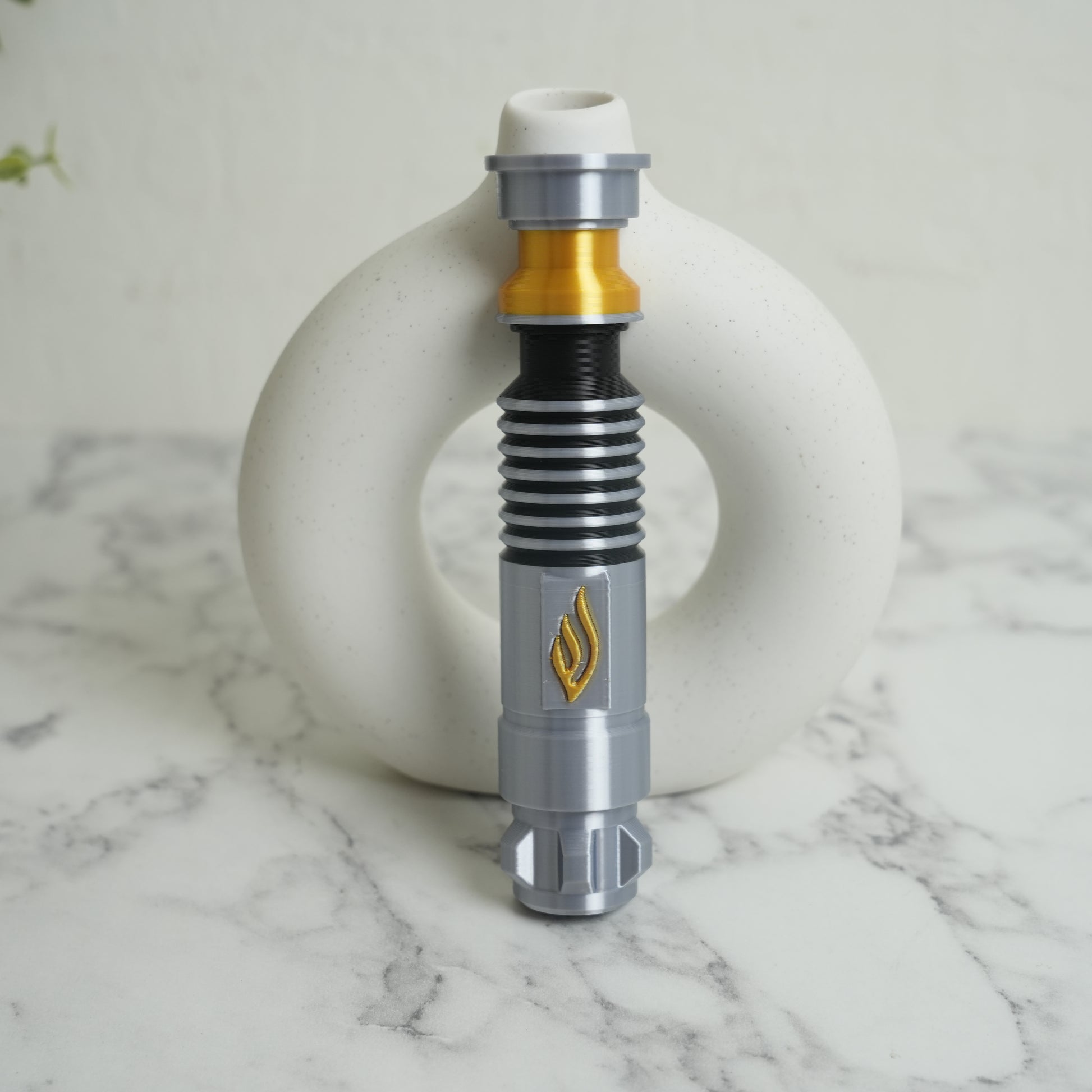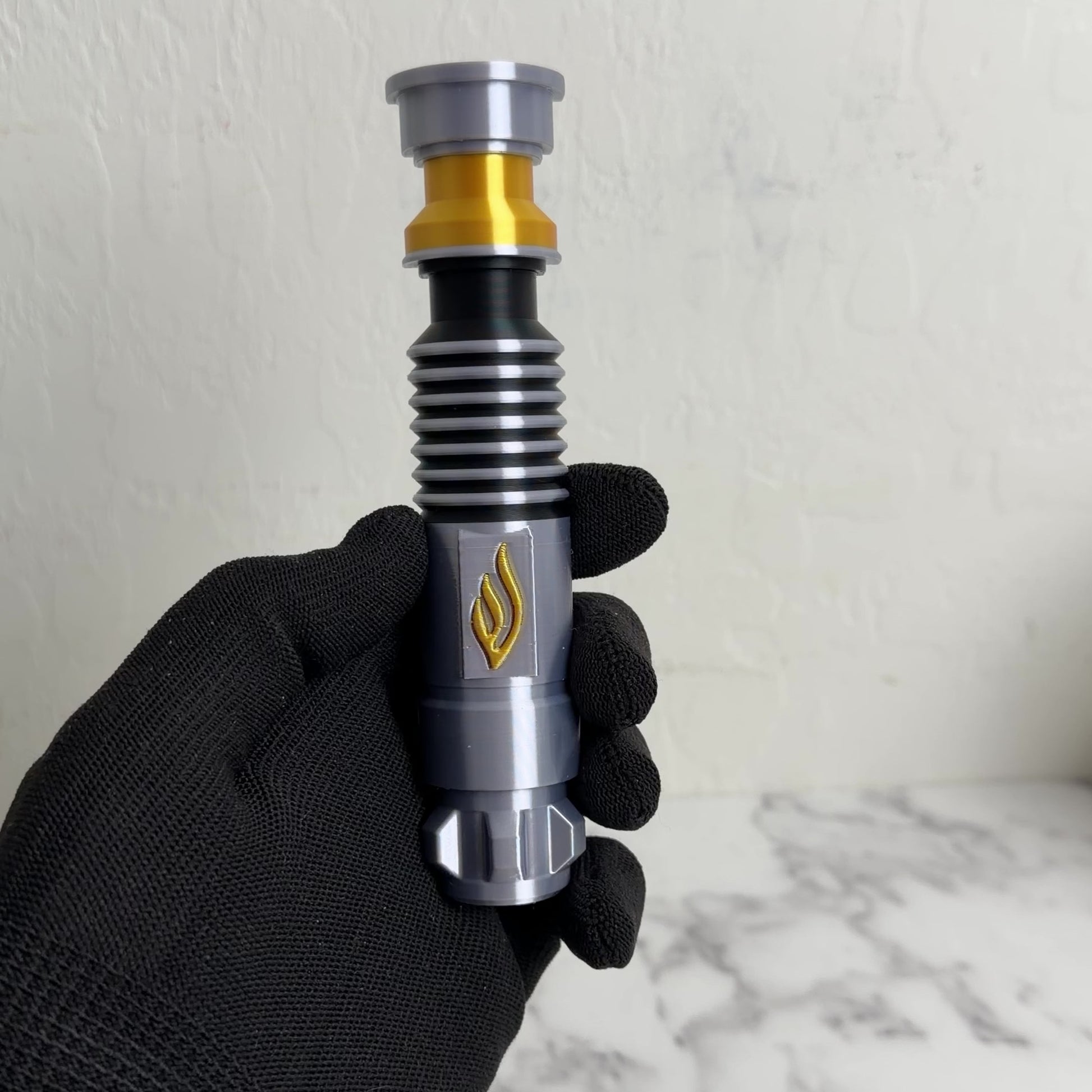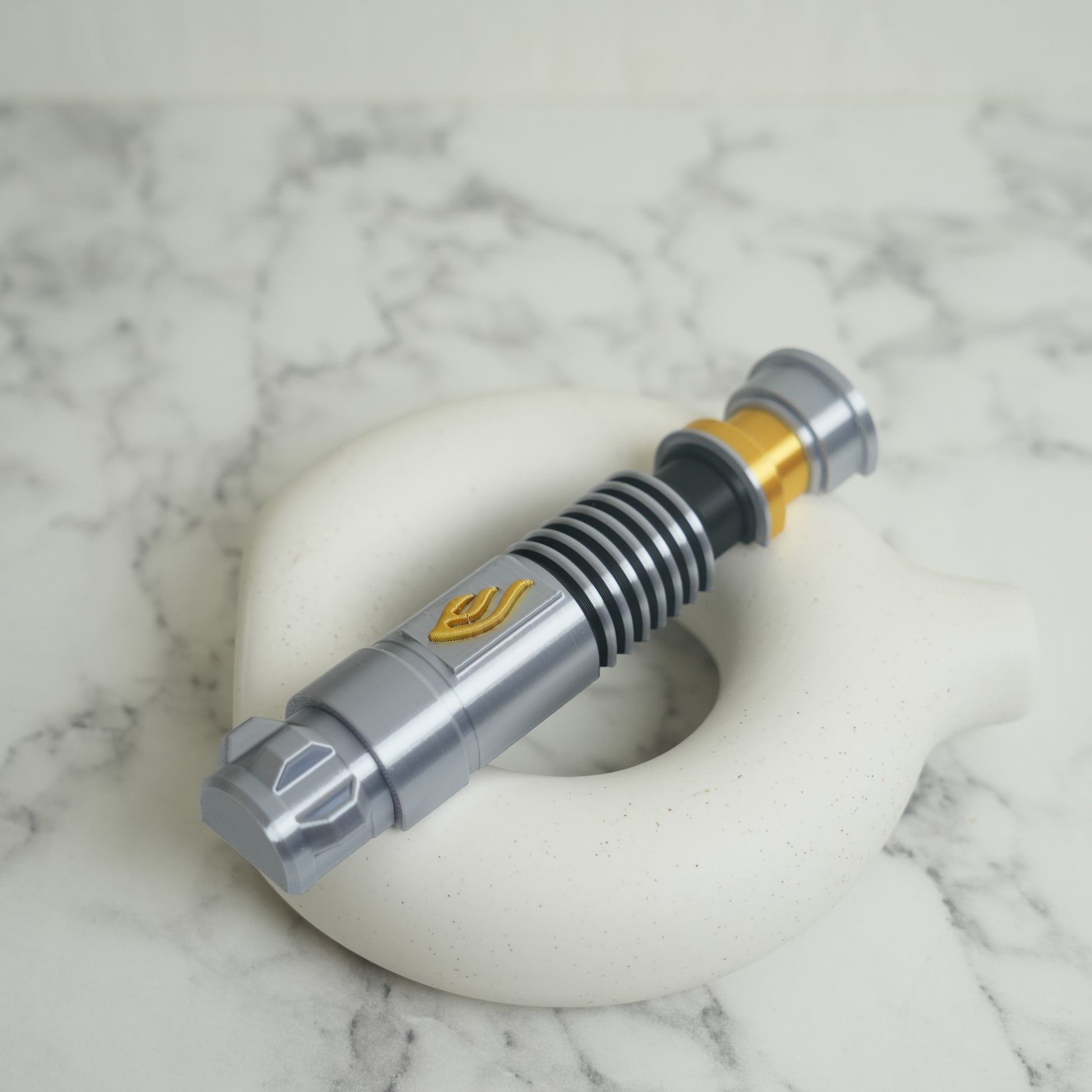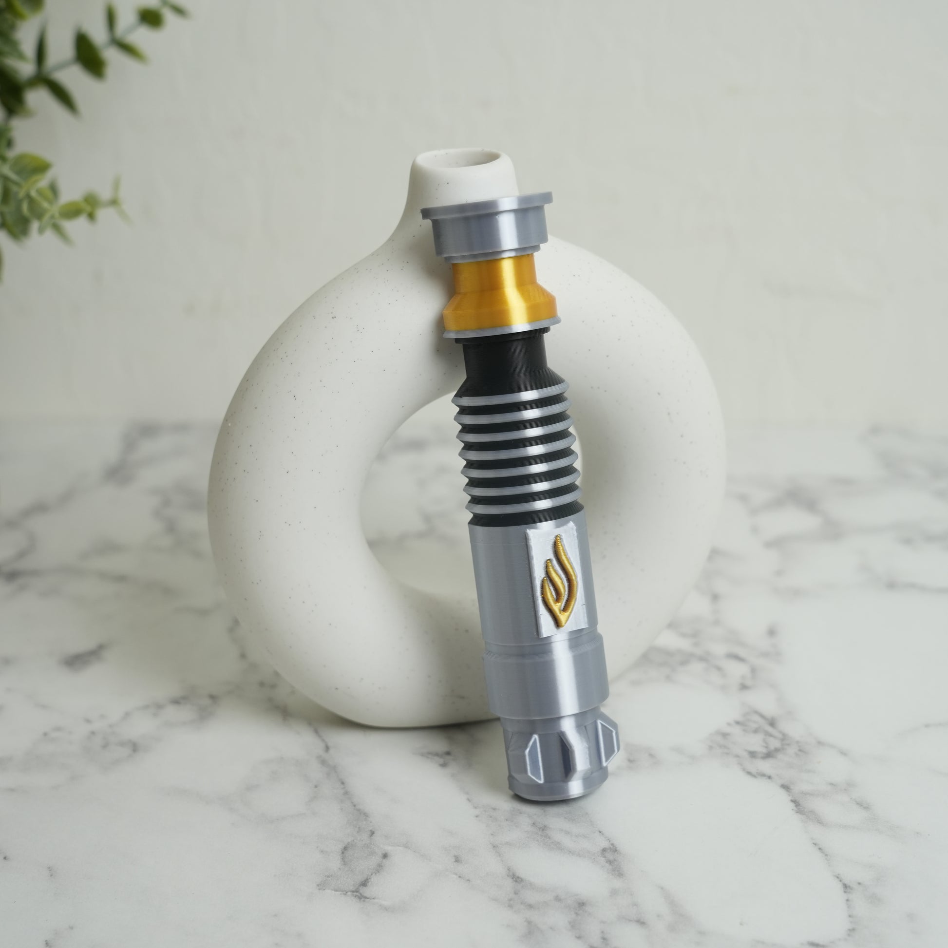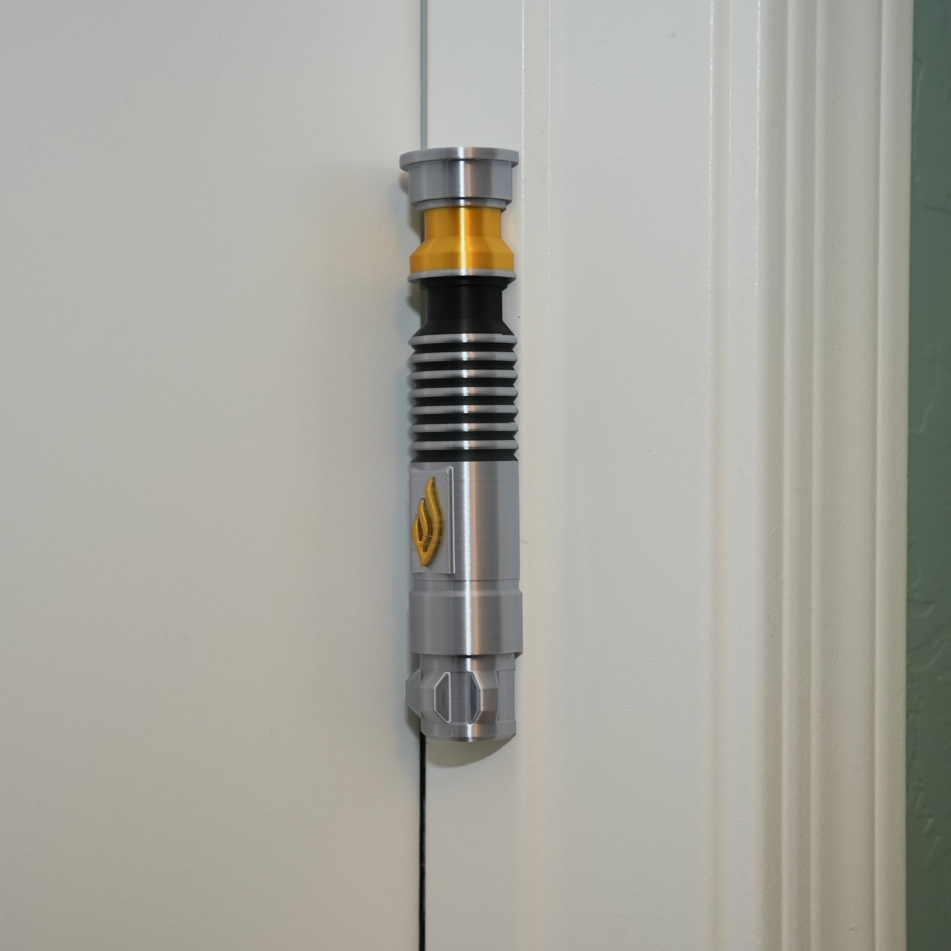 Elevate your home's spiritual and fandom flair with this stunning 3D-printed Lightsaber Mezuzah Case. Designed with precision, this unique piece measures 13.8cm in height, 2.8cm in width, and 2cm in depth, designed to house a scroll up to 13.5cm in length (scroll not included). For indoor use only. Made from high-quality black, silver, and gold PLA plastic, it captures the iconic look of the lightsaber with intricate detailing and a sleek, polished finish. Perfect for Star Wars enthusiasts and those seeking a meaningful blend of tradition and pop culture, this mezuzah case is a striking addition to any doorway and a great conversation starter. Comes with very strong 3M VHB tape preinstalled for ease of mounting.