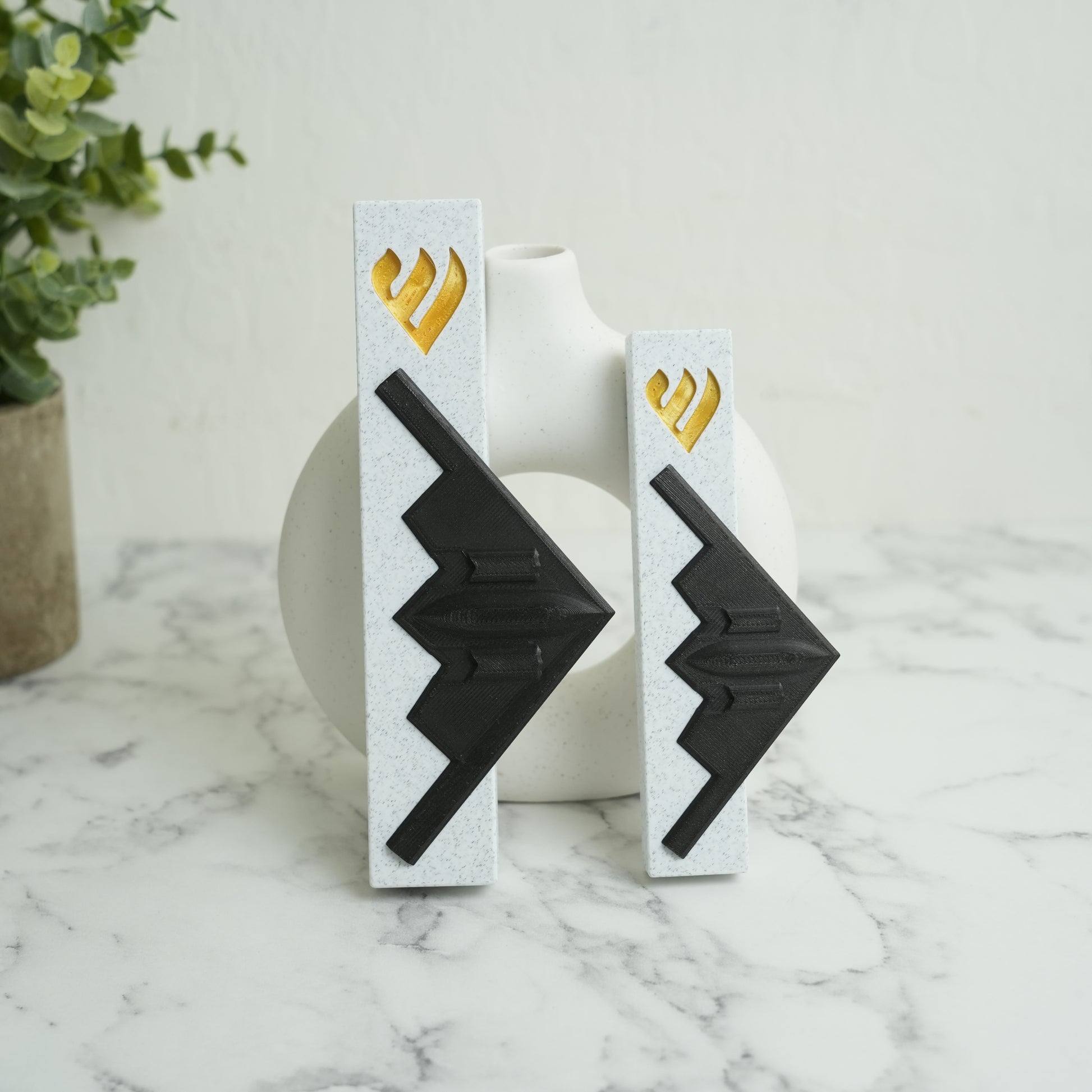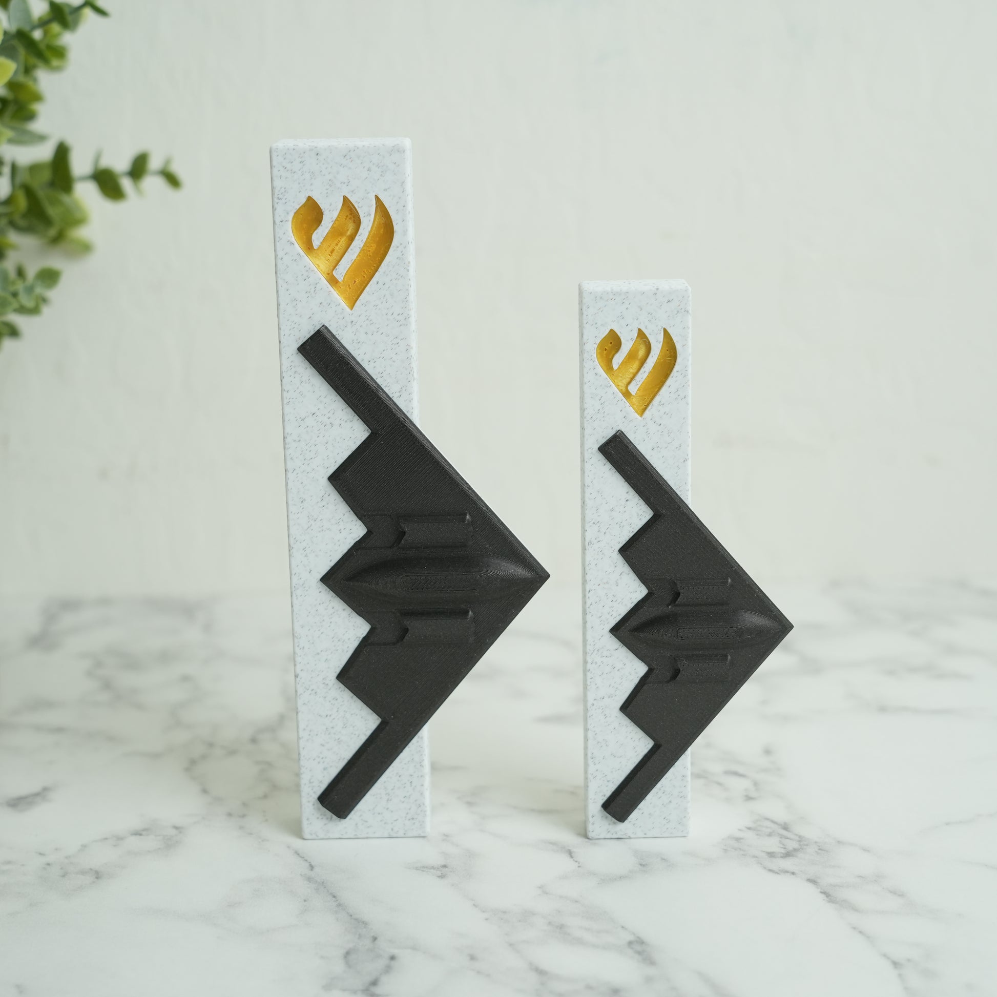 Elevate your home’s spiritual ambiance with our unique 3D-Printed B2 Spirit Bomber Mezuzah Case, made from durable, Marble, Black & Gold PLA plastic. This design fits standard door frames. We offer two variations of this mezuzah case, the other variation can be found in my Etsy store.