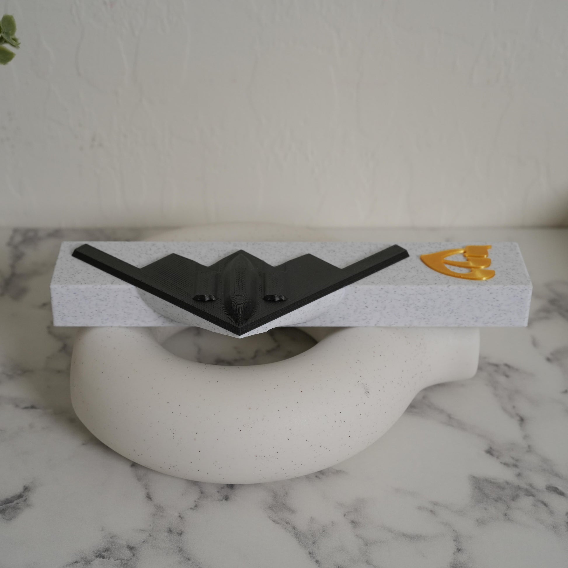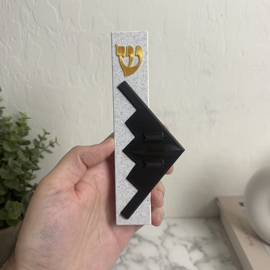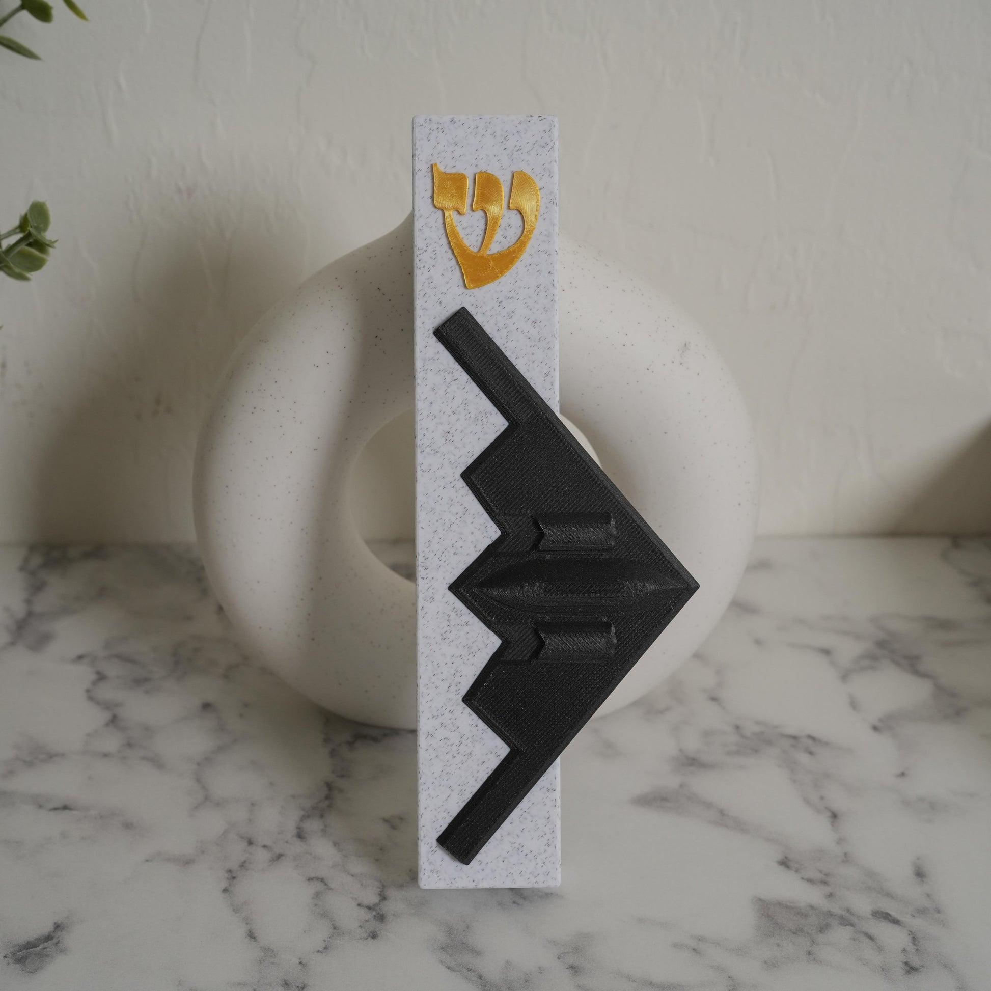 Elevate your home’s spiritual ambiance with our unique 3D-Printed B2 Spirit Bomber Mezuzah Case, made from durable, Marble, Black & Gold PLA plastic. This design fits standard door frames. We offer two variations of this mezuzah case, the other variation can be found in my Etsy store.