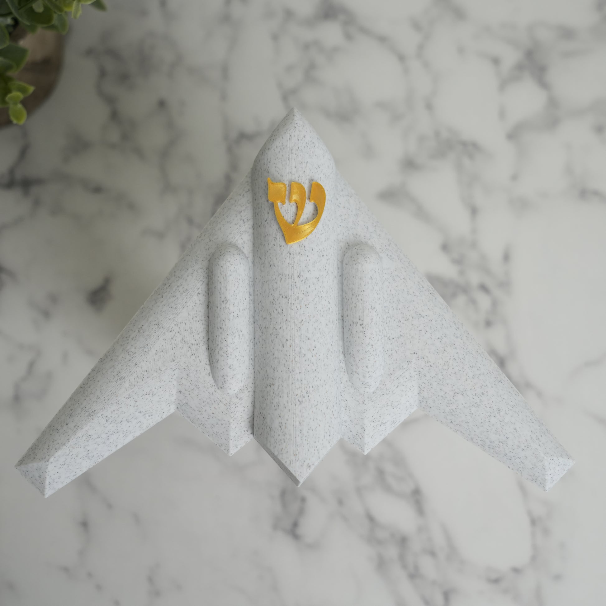 Elevate your home’s spiritual ambiance with our unique B2-zah Mezuzah Case, made from durable, Marble & Gold PLA plastic. This distinctive design, inspired by the iconic B2 Spirit stealth bomber, symbolizes Israel’s unwavering strength and its enduring commitment to peace. Far from glorifying conflict, this mezuzah case represents resilience, protection, and the hope for harmony, making it a meaningful addition to any Jewish home.