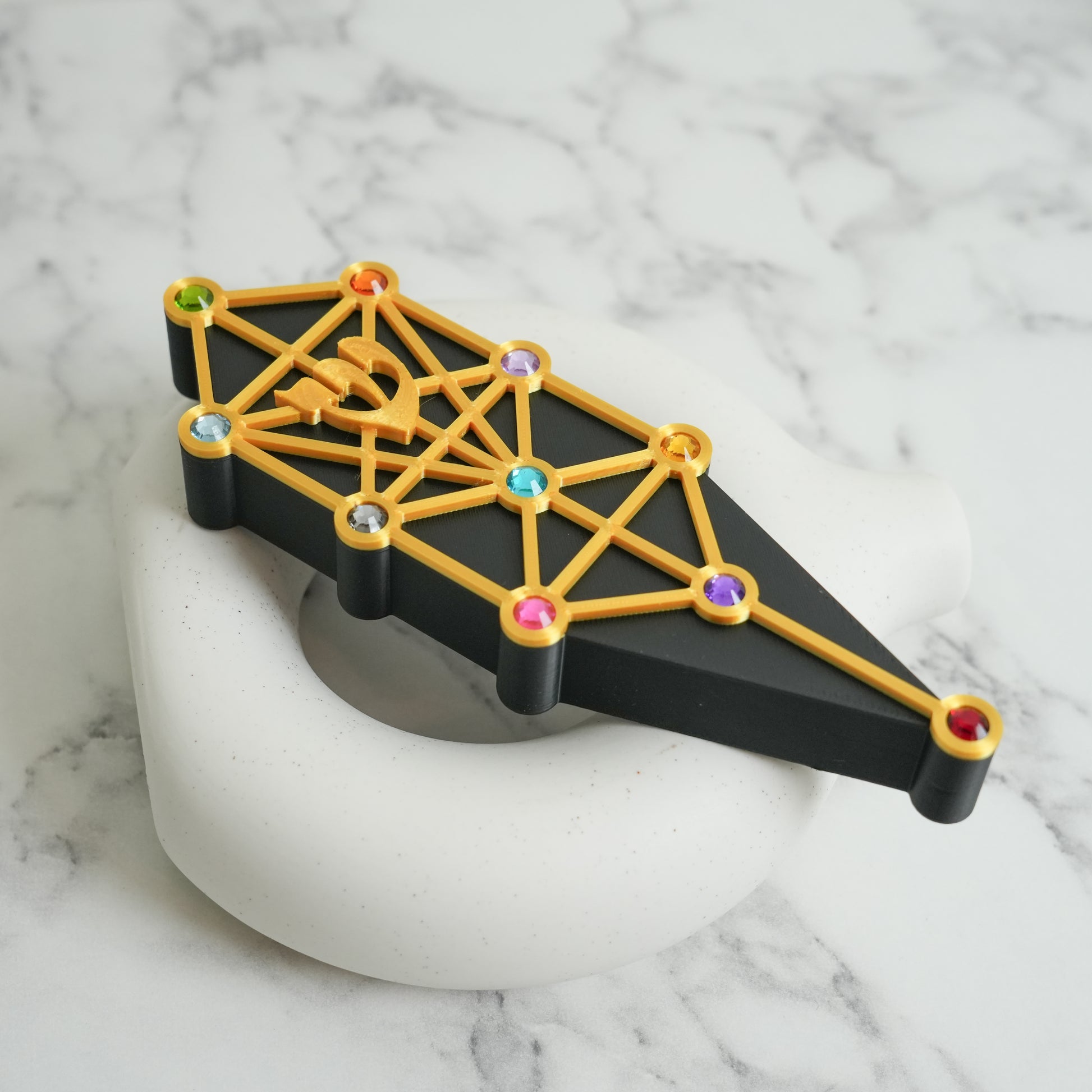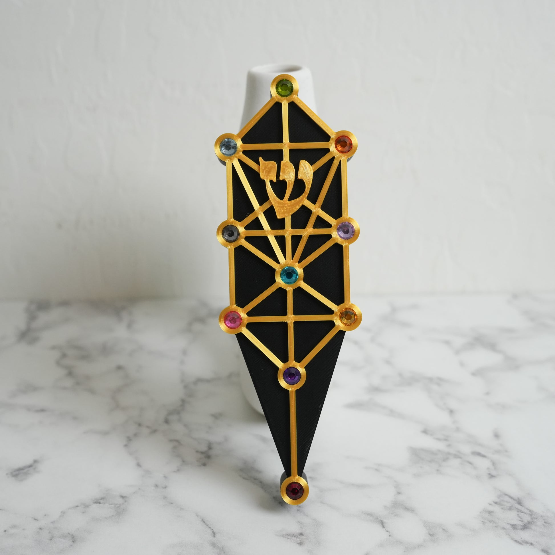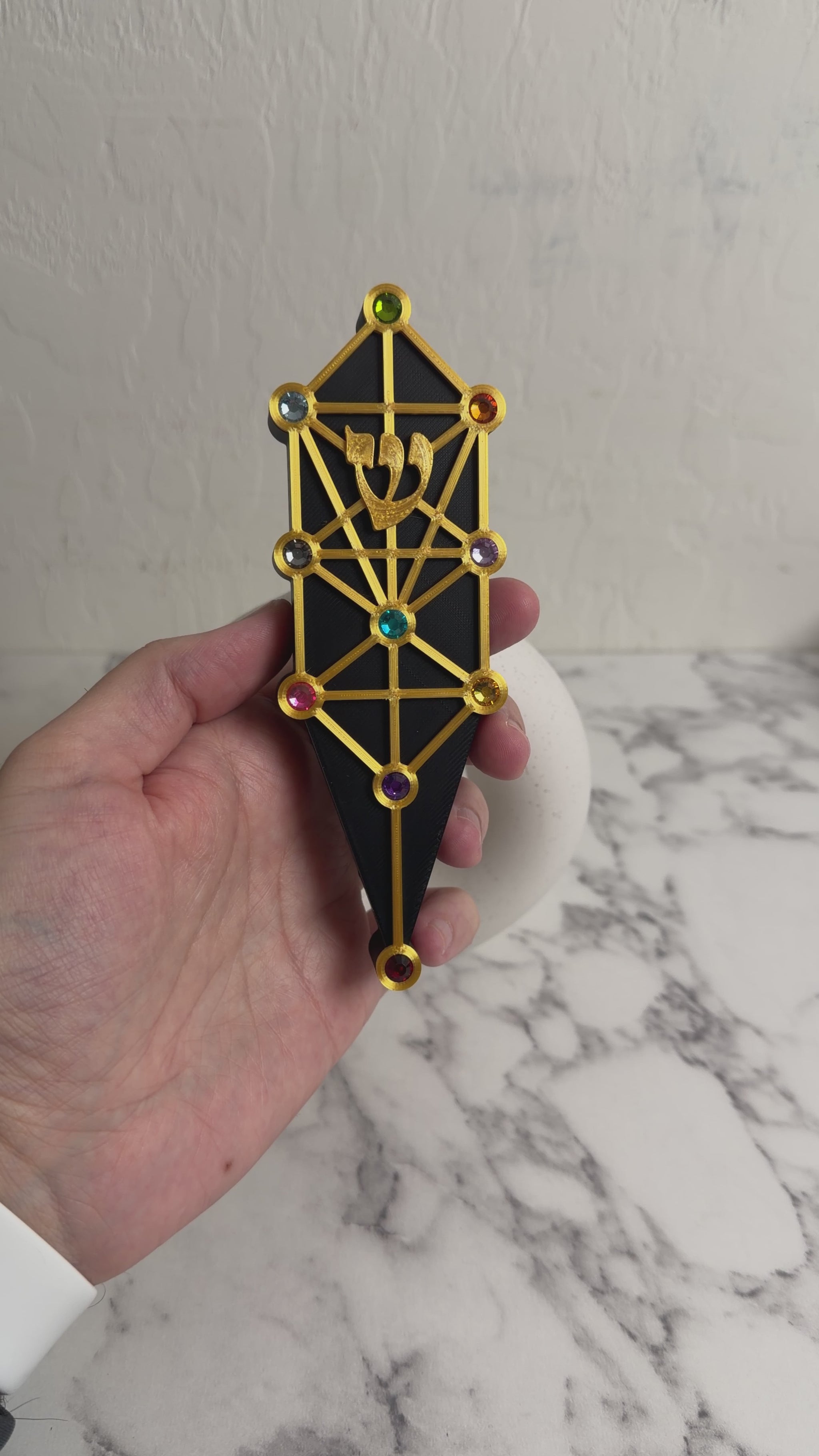Expertly 3D-printed in high-resolution detail, this elegant case features the complete Etz Chaim (Tree of Life) with all 10 Sefirot meticulously represented. Each sephira is crowned with a sparkling, hand-embedded rhinestone in its traditional mystical color correspondence: