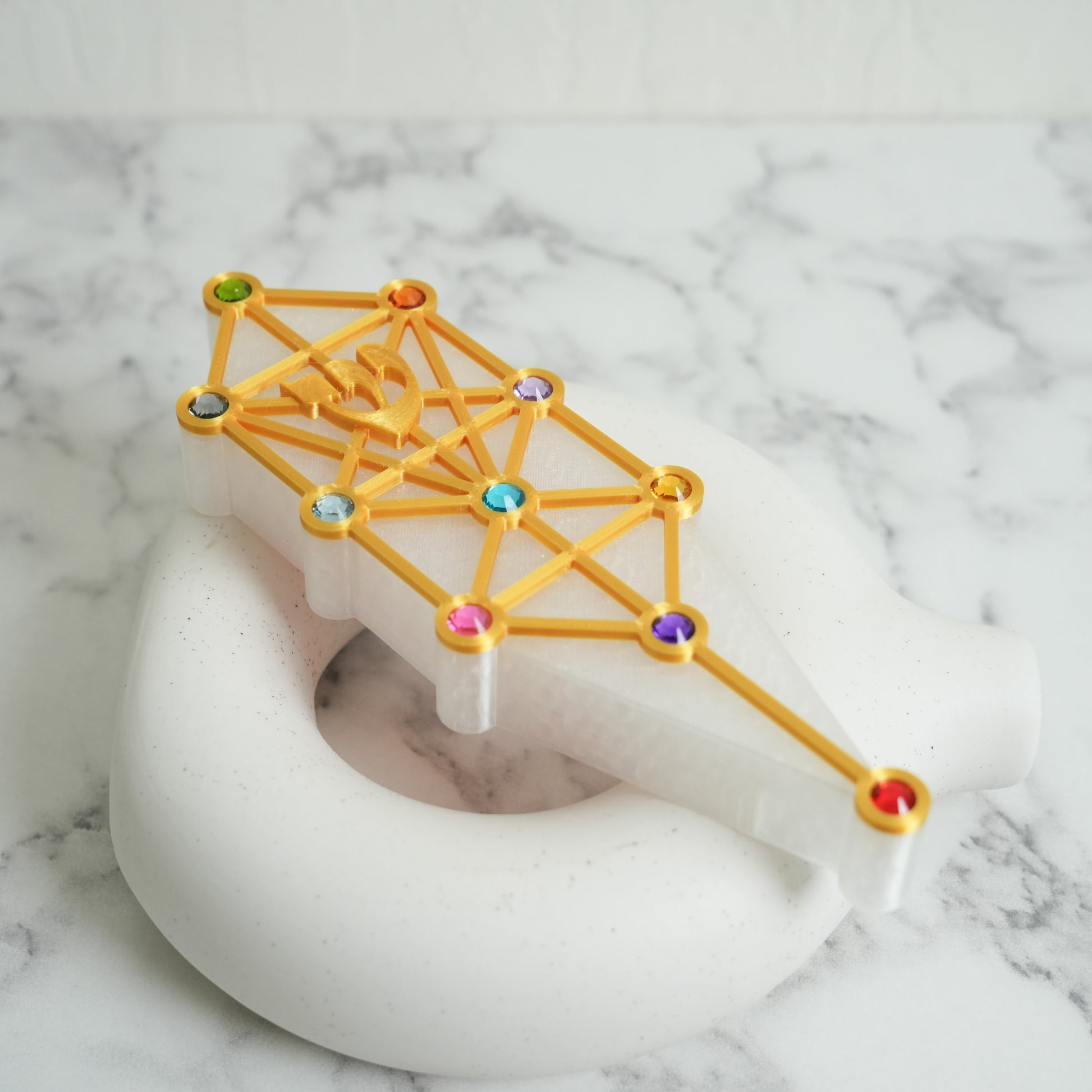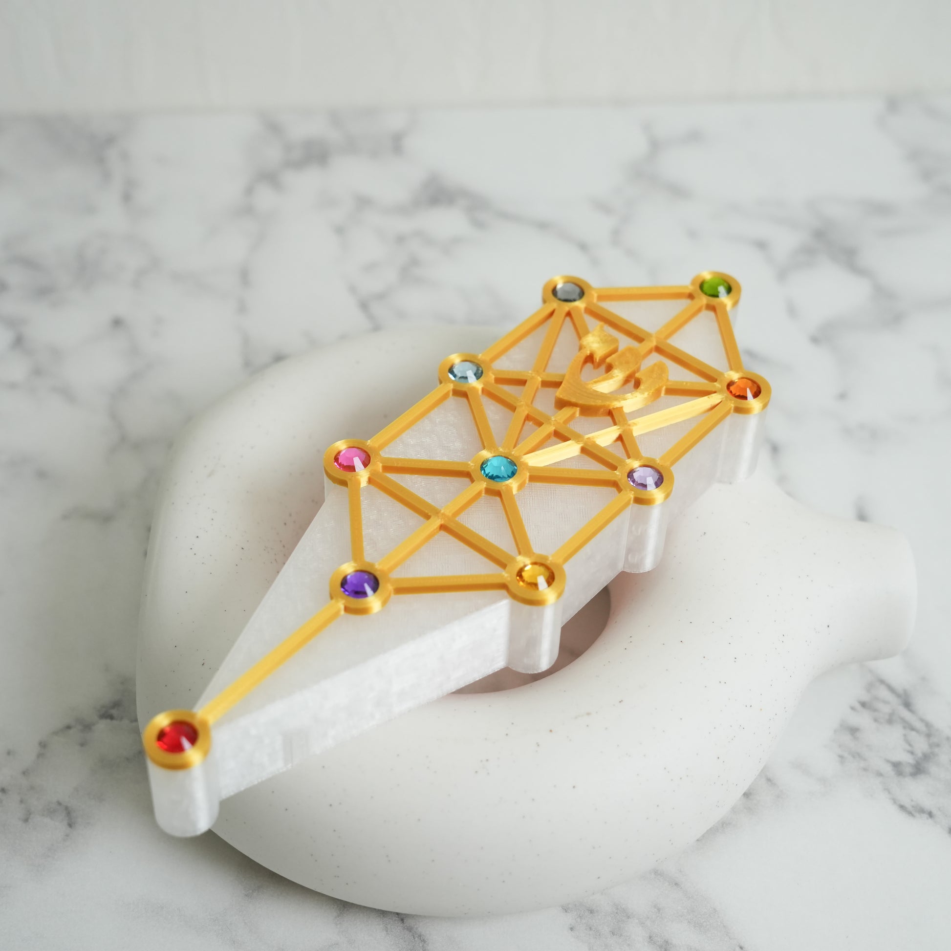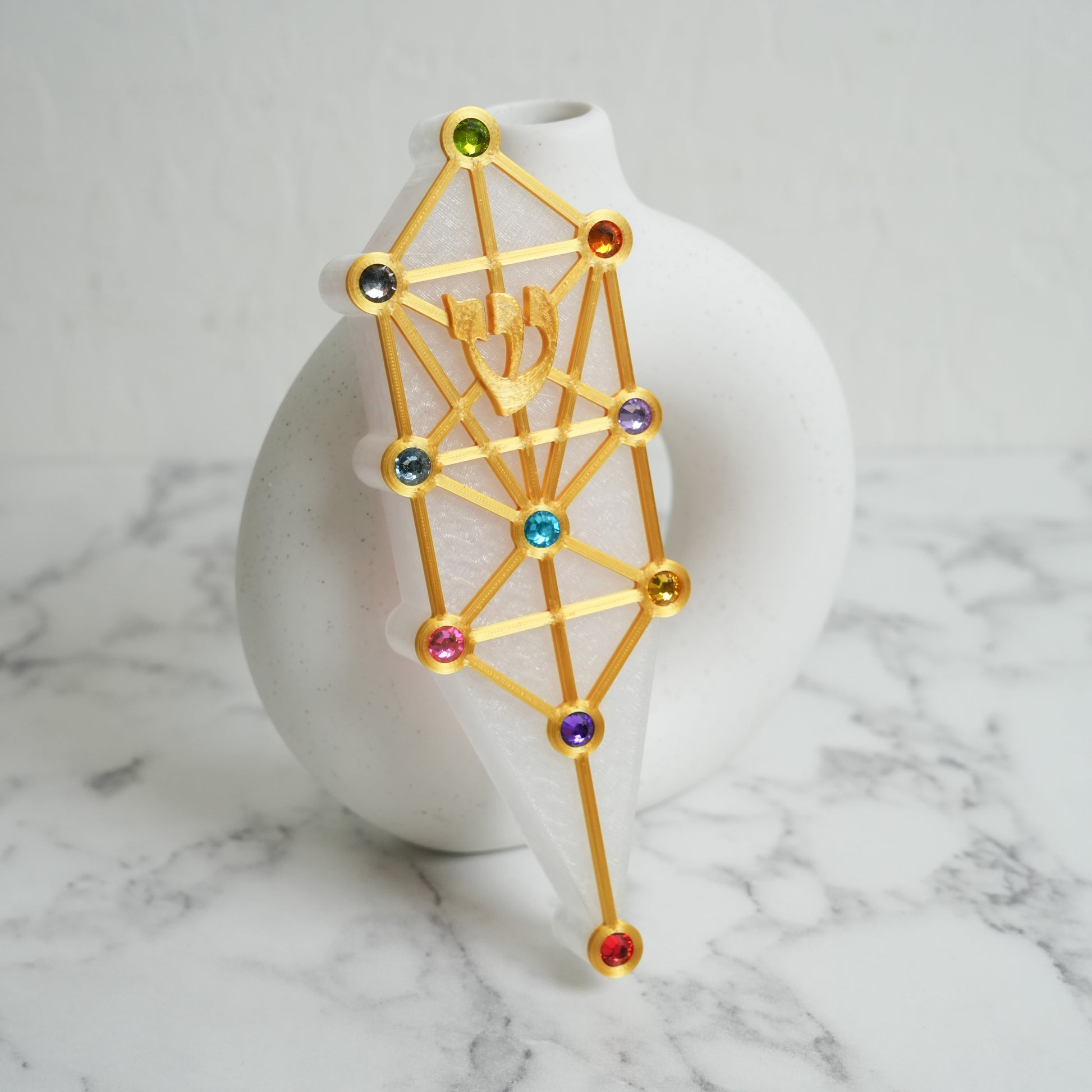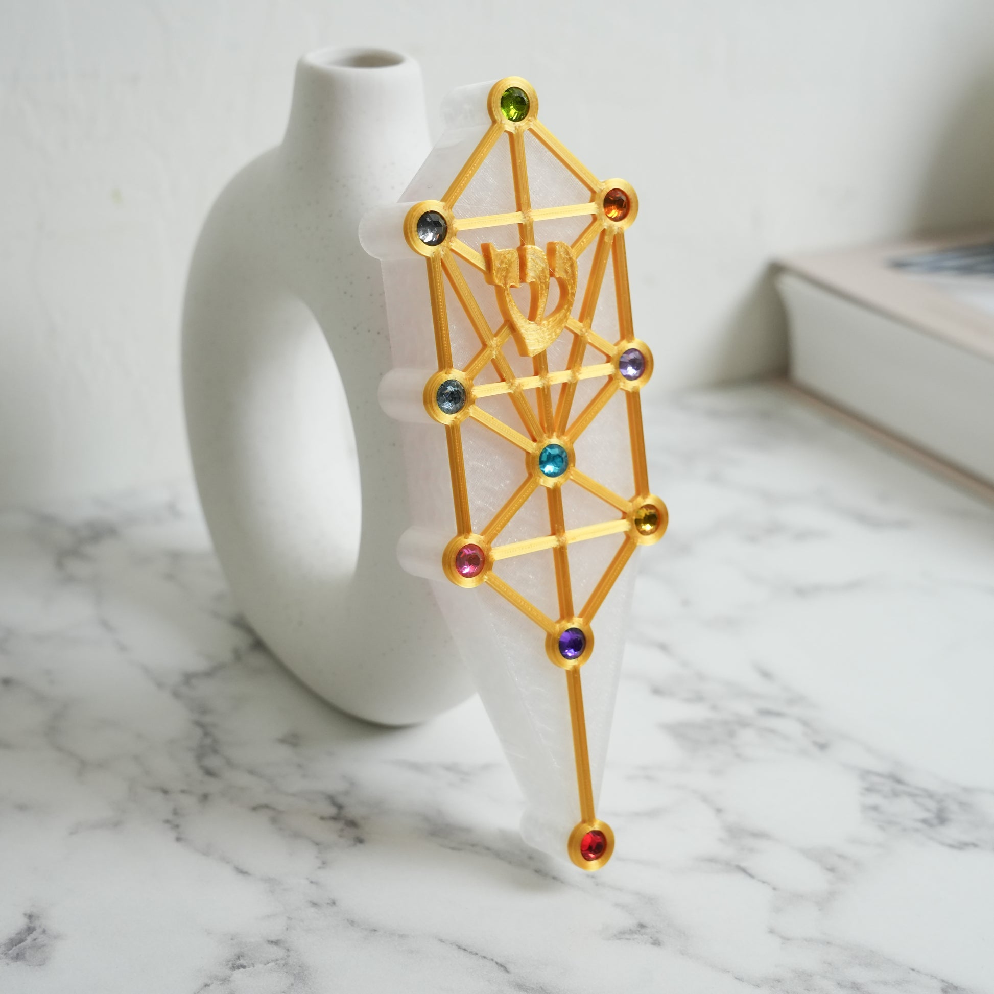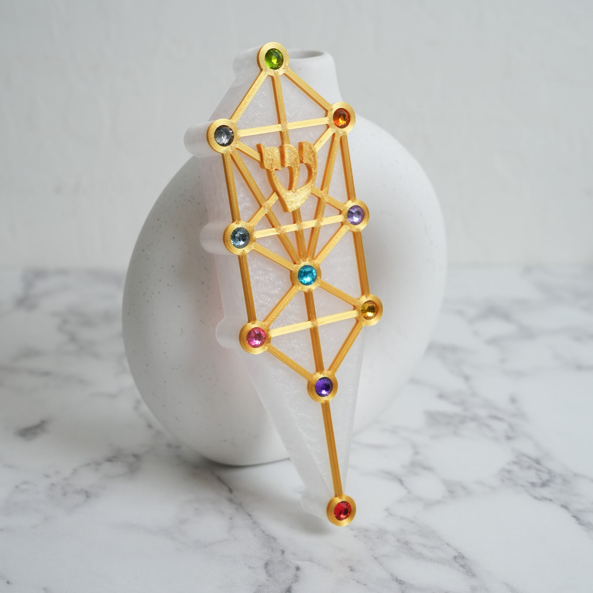 Expertly 3D-printed in high-resolution detail, this elegant case features the complete Etz Chaim (Tree of Life) with all 10 Sefirot meticulously represented. Each sephira is crowned with a sparkling, hand-embedded rhinestone in its traditional mystical color correspondence: